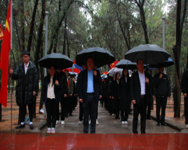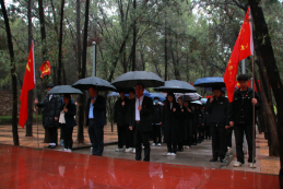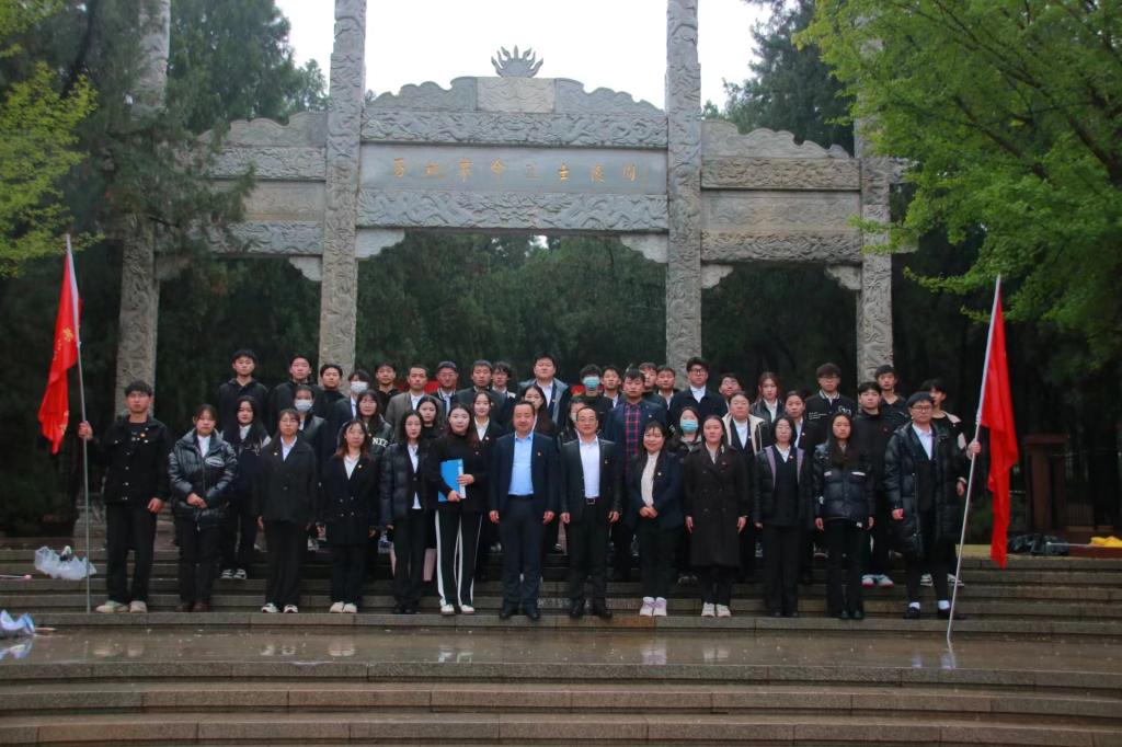 细雨纷纷寄哀思,缅怀先烈情深长。纪念碑前,全体师生带着追思和敬意肃立默哀,并向英雄先烈敬献花篮,缅怀革命先烈。