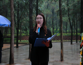 细雨淋淋,氛围庄重。在北校区综合办公室副主任、学生工作处副处长杜志玉带领下,全体党员在党旗之下、英雄纪念碑前庄严宣誓。不忘初心,牢记使命,发扬先烈革命精神,为成为一个合格的共产党员而奋斗终生。一支支满含着悼念与哀思的鲜花被摆放到纪念碑前,在场所有师生都深知,只有牢记历史我们才能不断向前。全体青年团员也纷纷宣誓,表示将勤奋学习,积极工作,争做中华民族好儿女,为建设更加繁荣昌盛的祖国而不懈奋斗。