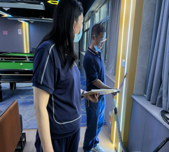 综合办主任高奎带领安保干部重点核查餐厅职工宿舍内电源、插排是否合规达标,消防设备、安全指示标识能否正常使用、地面卫生是否干净整洁、墙角有无堆积杂物现象,旨在从源头上切断火灾隐患。