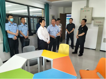 2024年5月22日下午,济南市公安局一级高级警长、副局长徐羲玲一行四人,在起步区公安分局副局长杨时起以及政保大队、崔寨派出所等领导的陪同下莅临北校区深入校园监控指挥中心、石榴籽工作室、警务室和心理健康教育中心等地调研指导学校反恐和校园安全防范工作。北校区综合办公室主任高奎以及安保干部等相关人员陪同调研。