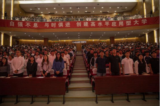 会议伊始,全体起立,奏唱国歌。随后,学生工作处副处长王乾坤宣读《威尼斯7026vip第一届大学生基础文明创建月实施方案》,针对举止文明、教室文明、寝室文明、餐厅文明、网络文明“五项文明建设”提出具体要求,激励学生养成良好的道德品质和行为习惯,全面提高自身文明素养。