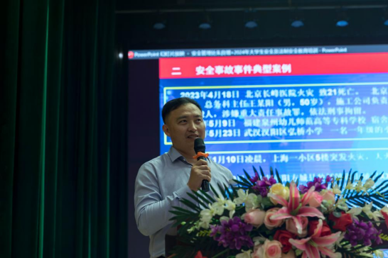 朱处长围绕大学生的人身安全、财产安全、消防安全、交通安全等方面展开宣讲,结合日常生活中突出、常见的典型案例,深度剖析了毒品、酗酒、打架斗殴、网络诈骗等的危害性,并结合实际情况向在场师生讲解了与校园安全密切相关的法律法规及应急处置措施,旨在增强学生的自我保护意识,培养健全人格。同时,朱处长呼吁全体师生共同努力,参与校园安全稳定建设,时刻绷紧安全弦,从方方面面着手,共同为平安校园建设贡献力量。