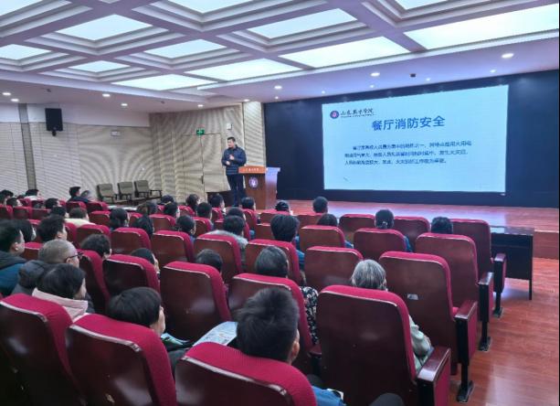 2月19日下午,北校区综合办公室在艺术楼报告厅组织开展了燃气安全、消防安全、食品安全专题培训,培训特邀崔寨街道办事处规划建设管理办公室副主任张春香、山东港华燃气集团起步区燃气有限公司党支部书记马东、运行主任孙振等专业人员到场指导。培训会由北校区综合办副主任张中凯主持,供气管家张建德、北校区综合办安全管理负责人韩长江、北校区综合办餐厅及商铺管理负责人王霞林分别担任主讲。后勤餐饮、商业、物业等关键岗位职工及校内商户代表共计200余人参与活动。