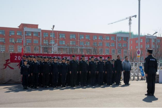 首先,高奎主任在致辞中指出,近年来,北校区在校园安全建设方面成效显著,设立法律咨询援助、心理健康教育、校园监控指挥三大中心,成立“石榴籽”民族一家亲工作室,构建两站三心四室“234”校园警务工作模式,着力打造驻济高校警务室示范品牌。同时,各单位、部门不定期开展隐患自查整治工作,加强师生宣传教育,做好安保人员培训,致力于为师生创造一个安全、文明、和谐的学习和生活环境。他着重强调,安全稳定是学校高质量发展的根本前提和重要保障,校园安全关乎着每一位师生的切身利益,学校将秉持“安全第一、预防为主”的理念,不断完善校园安全管理体系,督促全体安保人员按照“守土有责,守土尽责”的要求,提高思想认识,主动担当作为,狠抓工作落实,持续加强校园安全管理工作,确保全校政治安全和校园稳定。