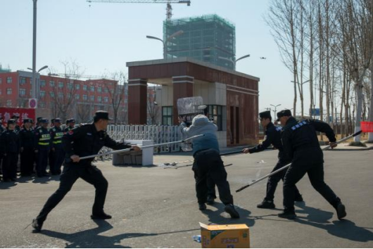 演练共分为四个科目,首先进行的是学校应急救援队“擒敌拳”展示,热血青春,铸练钢铁坚强意志;英姿飒爽,展现英才学子风采。第二至第四科目分别为,一对一、一对二和一对三实战模拟;“歹徒”私闯办公和教学区域实战模拟;“校外醉酒人员”冲撞大门实战模拟。安保人员通过应急处置模拟场景,演练逼真、紧贴实战,处置果断、精准高效,充分展现维稳处置的震慑力。整场演练指挥有力、组织严密,立足险情、贴近实战,充分展示了公安机关与学校师生密切协同、携手并进、共保平安校园的专业素养和精神风貌。