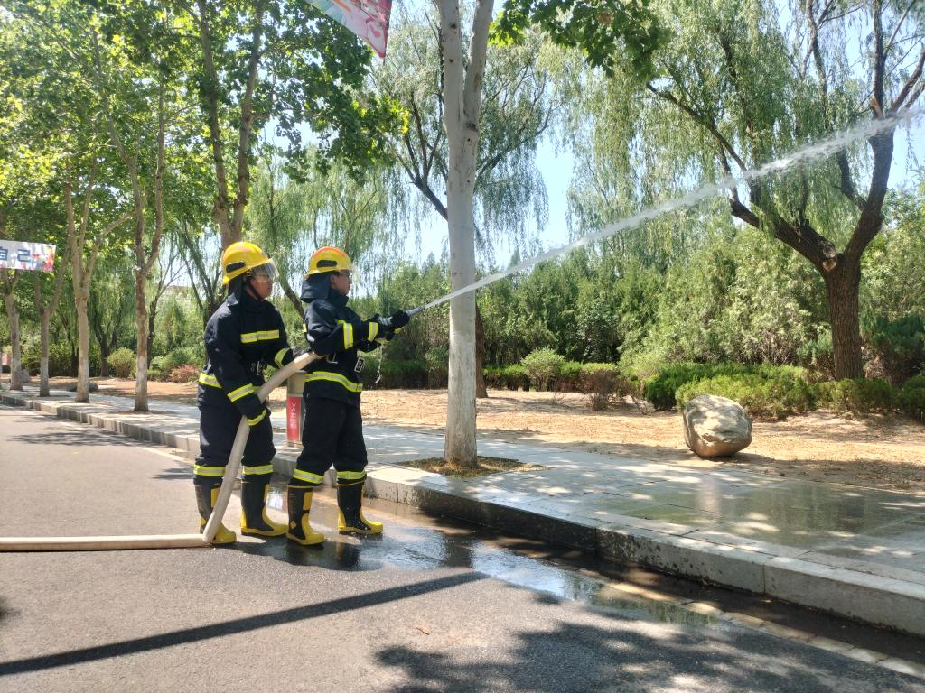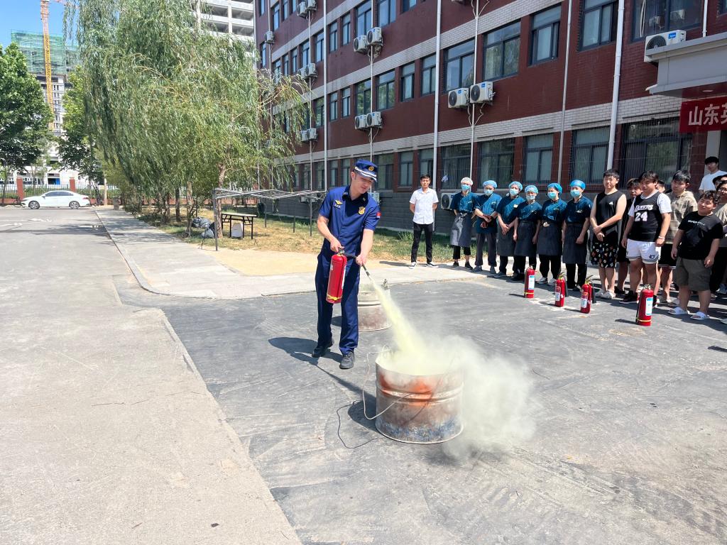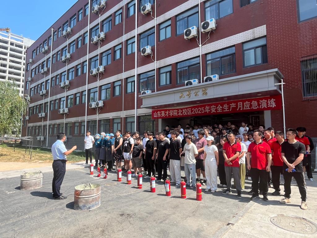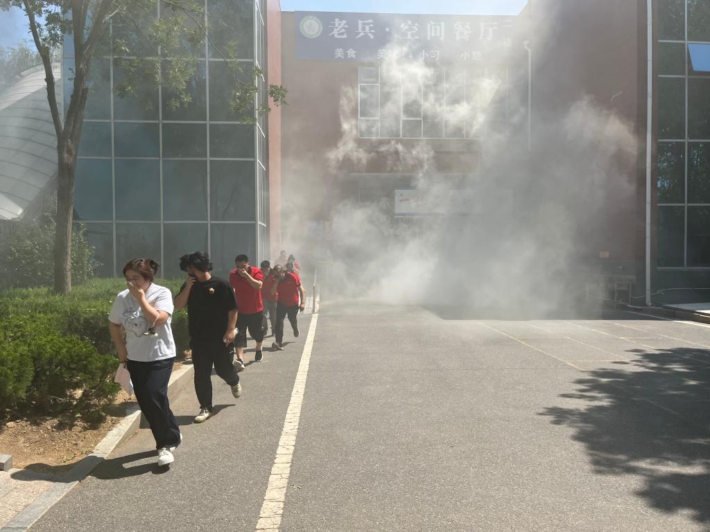 今年6月是第24个全国“安全生产月”,省政府安委会和济南市教育局下发了《2025年“安全生产月”活动实施方案》,活动主题是“人人讲安全、个个会应急——查找身边安全隐患”。为提高师生消防安全意识,加强校园安全教育,防止各类事故的发生,保障学校安全稳定,确保学校高质量发展。深刻吸取近期火灾事故教训,切实增强师生消防安全意识,全面提升学校火灾防控水平。6月17日下午,北校区综合办公室分别在餐厅东侧广场和六号学生公寓楼前组织开展了师生员工消防疏散逃生和灭火应急演练。北校区综合办特邀起步区消防救援大队、崔寨街道应急办和崔寨派出所领导莅临指导,北校区综合办公室副主任张中凯,学生工作处副处长王乾坤,以及餐厅、商业街、实验员、图书馆管理员、消防安全管理员、二级学院师生代表等共计500余人参加了本次演练。此次演练由北校区综合办公室主任高奎主持。
