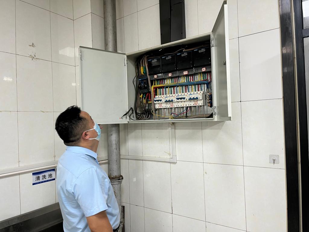 检查组首先来到监控室、消控室查看校园关键点位监控覆盖及消控设施运行情况,确保安防、消防系统全面有效。随后在东大门,检查人员详细查看了车辆及人员进出登记台账,核对登记信息的完整性与真实性,要求安保人员严格执行准入制度,陌生人员及车辆出入时信息要核实到位。在食堂与校园超市,检查组重点检查了燃气管道密封性和消防设施完备性,并对食品原料生产日期及保质期进行核查,杜绝过期、变质食品在校园内流通。此外,检查组还深入配电室、水泵房等关键设施场所,对电气设备的运行情况进行细致排查。