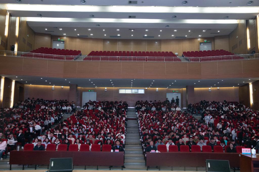 为增强学生反诈意识,有效防范网络新型电信诈骗违法犯罪高发势头,切实做好反诈骗校园安全教育工作,筑牢校园反诈防护墙。10月28日下午,北校区特邀起步区公安分局崔寨派出所教导员吕克,反诈民警于劭妍在大学生活动中心举办防范电信网络诈骗专题讲座。北校区安保干部,2025级新生班辅导员及学生共计800余人参加了本次讲座。讲座由北校区综合办公室主任高奎主持。