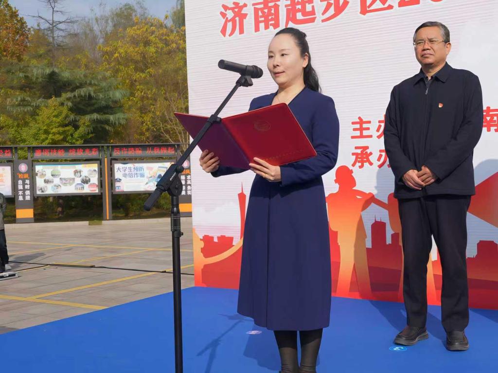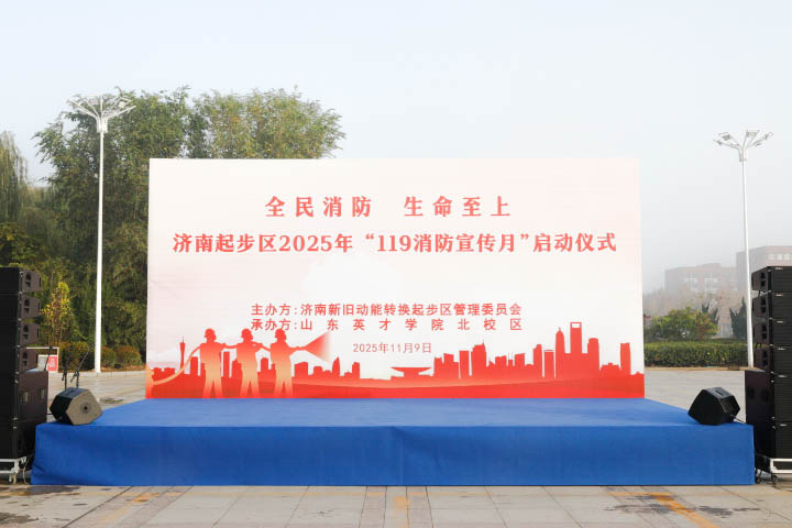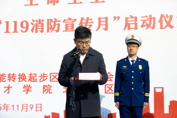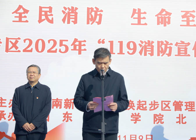 为进一步提高全民消防安全意识,积极营造浓厚的消防安全宣传氛围,11月9日济南起步区以”全民消防,生命至上——安全用火用电”为主题的2025年“119消防安全宣传月”启动仪式暨疏散逃生演练活动在威尼斯官网举行。起步区综合执法部部长孟克非,社会治理部副部长王殿强,崔寨街道党工委副书记、街道办主任张博,消防救援大队长王永武,学校纪委书记、副校长李晓玲及各部门、二级学院负责人等1000余名师生代表参加此次活动。活动由起步区社会治理部李智魁副部长主持。