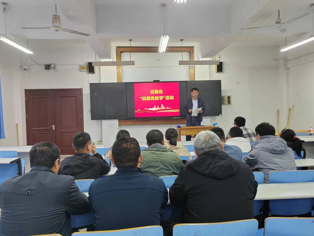 为扎实推进学校审核评估准备工作,健全教学质量保障体系,提高教育教学管理水平,全面提升人才培养质量,根据学校工作安排,后勤处全体教职工于2022年10月14日下午13点30分在办公楼1001会议室举行后勤处“说服务教学”活动。