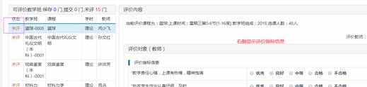 Step2:进入学生评价模块,点击 未评,右侧显示:评价指标信息