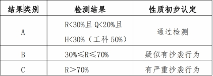 3.首次检测,结果为 C 类,学生不允许参加一辩。由指导教师指导学生进行论文修改,再次查重,合格后参加二辩,仍不合格,毕业设计(论文)成绩不及格。