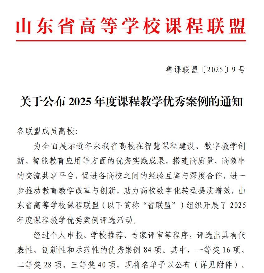 近日,山东省高等学校课程联盟公布了2025年度课程教学优秀案例名单,威尼斯官网医学院邬春艳老师凭借案例《“师-生-机”三元协同的智慧教学生态》脱颖而出,荣获三等奖。