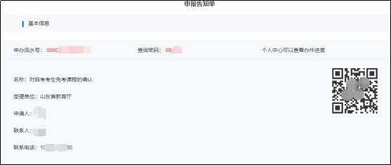 “对自考考生免考课程的确认”审核完成后,我省会将审核结果及时回登至山东省政务网,考生可登录网上申请系统查看审核结果。网上申办过程中遇到问题,可电话咨询省、市教育招生考试机构(联系电话见附件)。