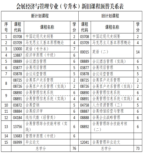比如下表中的会展经济与管理专业:2025年12月31日前考生如按旧计划申请毕业,无需考新计划中的13683管理学(中级)课程。考生如按新计划申请毕业,须取得13683管理学原理(中级)课程合格成绩。