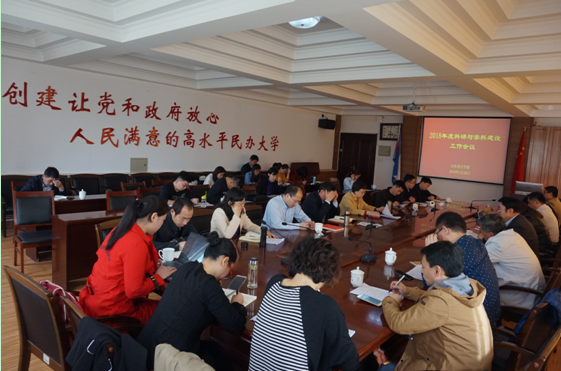 为了落实2018年工作计划要点和夏院长开学初在全校教职工大会上的讲话精神,全面安排布置2018年科研和学科建设工作, 3月28日上午,学校召开科研与学科建设工作会议,各二级学院院长、分管科研的副院长、研究院(所)负责人和有关职能部门管理人员参加了会议。会议由副院长帅相志教授主持。主要议题有三项,一是安排布置2018年科研工作任务,分解主要工作指标;二是安排硕士学位授予单位培育建设和重点学科建设工作,下达有关的工作指标;三是帅相志副院长就做好以上工作提出意见和建议。