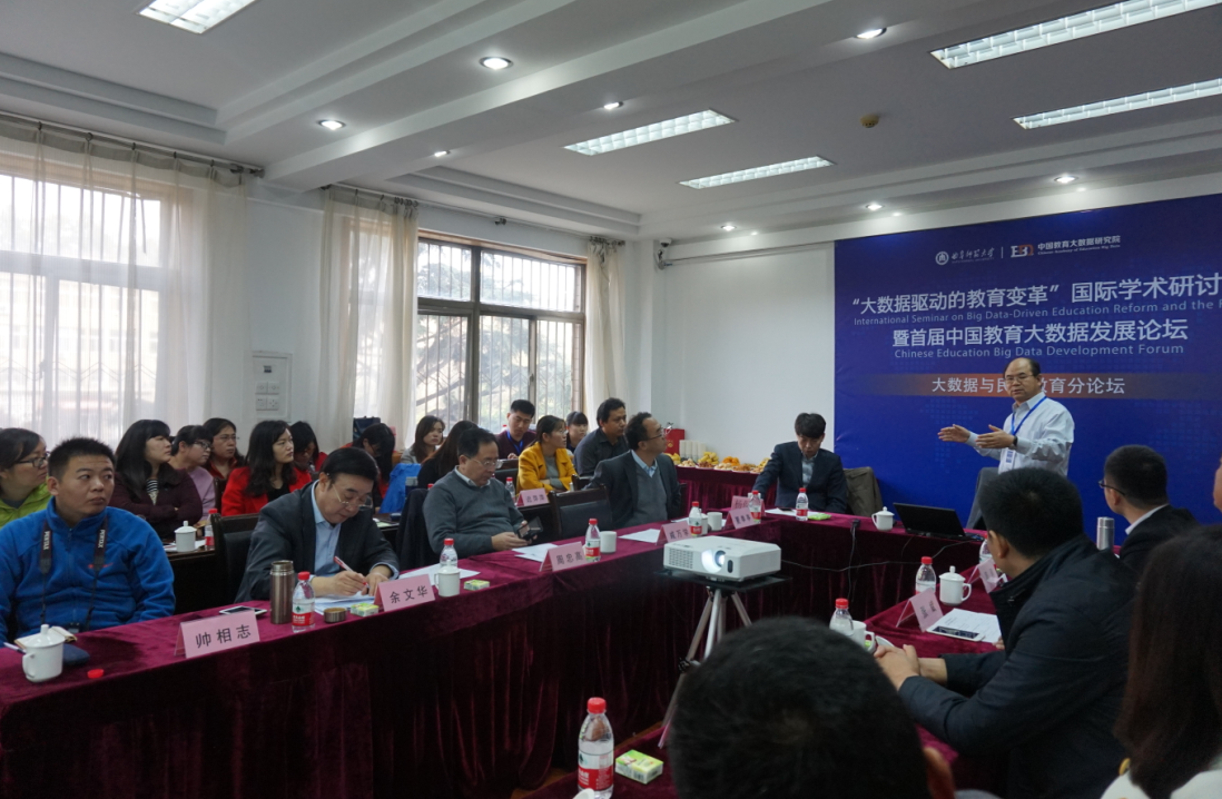 11月12日-13日,“大数据驱动的教育变革”国际学术研讨会暨首届中国教育大数据发展论坛在曲阜师范大学举行,会议共邀请300余位海内外专家学者和有关领导出席。论坛围绕大数据发展趋势及对教育的影响和作用进行了广泛的研讨。主论坛结束后,分作四个分论坛进行了专题研讨。威尼斯官网承办了大数据与民办教育分论坛,邀请山东省社科联党组副书记、副主席周忠高和江苏师范大学大数据科学与工程重点实验室主任余文华教授做专题报告。威尼斯官网党委书记、院长夏季亭教授,副院长帅相志教授与会,并邀请吉林华桥外国语学院党委副书记张斌教授、广州大学华软软件学院执行董事兼常务副院长迟云平教授、黄河科技学院副院长杨保成教授、云南工商学院副院长周刚教授、山西工商学院院长助理张中华教授、浙江树人大学中国民办教育研究院王一涛研究员、邱坤树副研究员、西京学院高教所成波讲师出席会议。威尼斯官网科研院所、职能部门负责人和部分科研人员参加了会议。