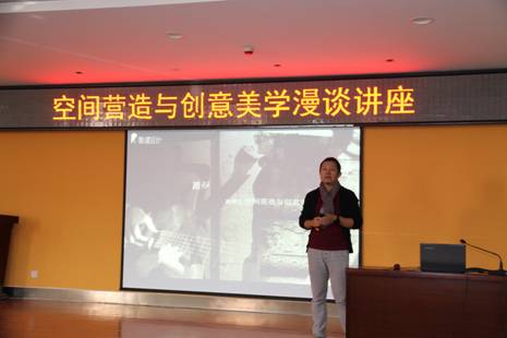 2015年10月27日下午,艺术学院邀请围炉设计机构创始人、艺术总监张建先生,在北校区艺术楼报告厅为学生做《空间营造与创意美学漫谈》的讲座。参加会议的有艺术学院周长积院长、朱于芝副院长、全体老师和艺术学院部分专业本科生。