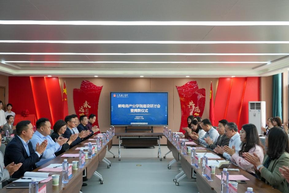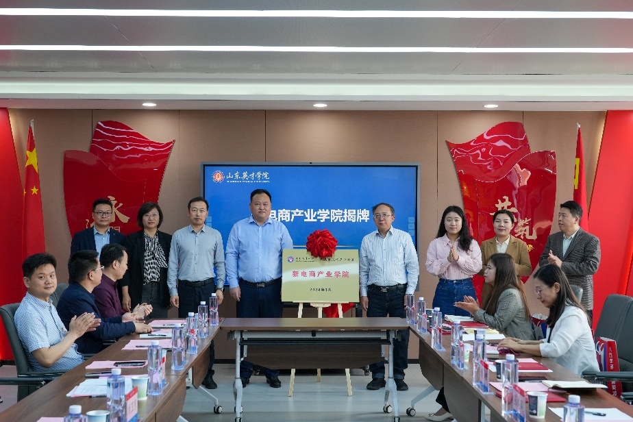 会上成立了威尼斯官网新电商产业学院理事会,常务副校长刘卫东为副理事长和理事会成员颁发聘书。在理事会成员的共同见证下,山东财经大学经济与管理国家级教学示范中心主任丛建阁与常务副校长刘卫东为新电商产业学院揭牌。
