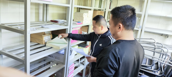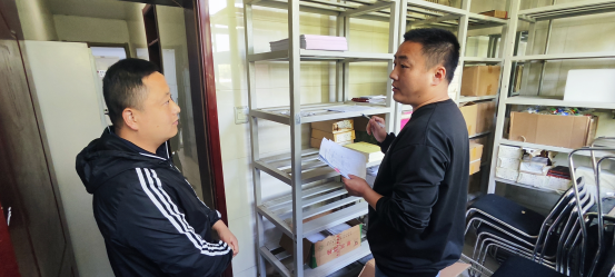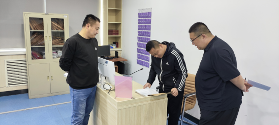 在检查过程中,王永强老师对商学院的各个教学区域、实验室、办公室等进行了细致的检查。他们认真查看了安全设施的配置情况,了解了管理制度的落实情况,并查看了实验室设备使用记录表、开放实验记录表以及教学耗材等材料使用情况,对学院的教学工作进行了全面的了解。