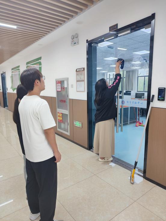 随后,本学期第一次劳动教育如期展开,实验中心李秋英老师、谷禄老师、刘禄丰老师、何淑文老师以及王超老师分别负责不同区域,指导学生们进行实验室卫生清扫。同学们也有条不紊地在各自负责的实验室忙碌起来。