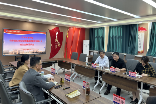 为进一步提升商学院教师教学水平和专业素养,商学院(国际学院)和百企慧集团于10月11日在商学院楼408举办了“共商共建产业学院”的洽谈合作会。百企慧集团董事长兼CEO单宝强、百企慧总经理助理兼商业经理张静静、山东大学教授张玉明莅临商学院,商学院党总支书记、院长赵坤、教学副院长殷永生、财务管理系骨干教师就校企合作事宜举行了洽谈。