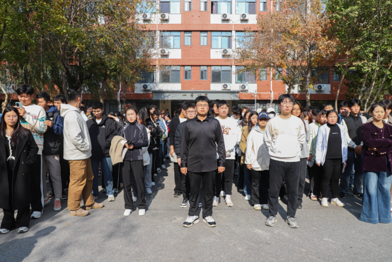 随着一阵尖锐而急促的消防警报声骤然响起,消防应急疏散演练活动正式开启。同学们在辅导员沉着冷静的带领和专业细致的指导下,迅速行动起来。他们以最快的速度但又不失秩序地按照预先设定好的疏散路线进行撤离。在这个过程中,展现出了良好的应急反应能力。参加演练的全体师生在极短的时间内便集中到了大学生活动中心前广场,各班负责人也第一时间进行人数清点,并及时汇报参演情况,整个演练过程高效且有序。