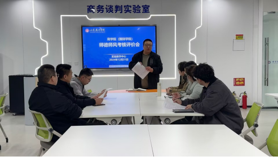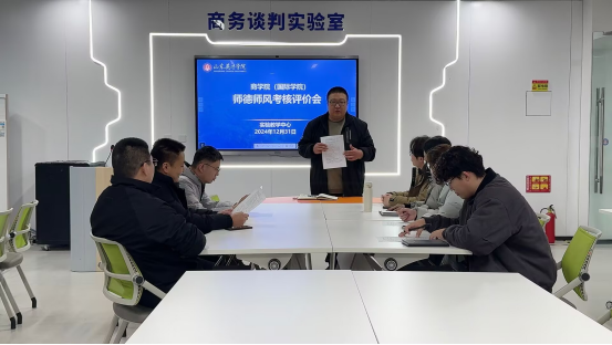 2024 年 12 月 31 日,商学院实验教学中心于商学院楼 307 室开展了学期末师德师风考核评价会,旨在进一步加强教师队伍的师德师风建设,全面提升教师职业道德素养,中心全体成员参与了此次会议,会议由谭建强主任主持并发表重要讲话。