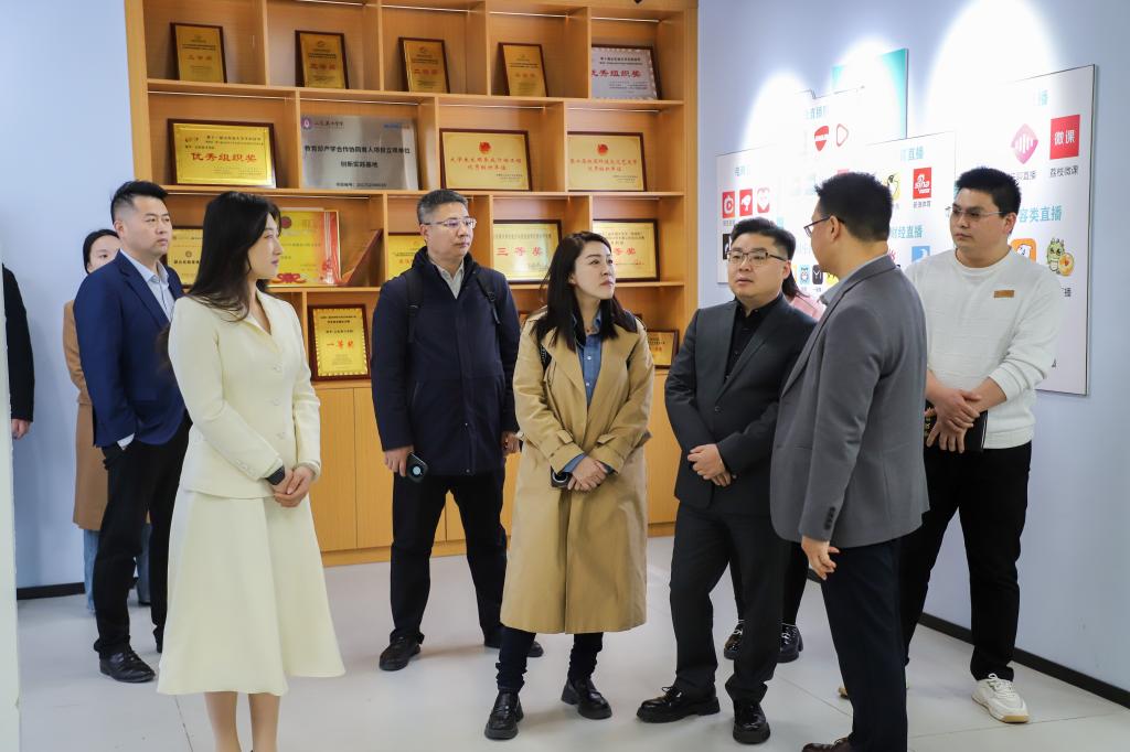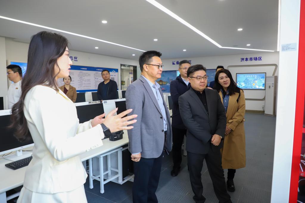 商学院(国际学院)院长赵坤陪同荣赫控股集团董事长张广福一行参观了商学院实验教学中心。在电子商务直播基地,企业代表详细了解了智能直播教学系统与实战化运营模式;在智慧金融实验室实时模拟的证券交易场景,张广福董事长对学院“以产业需求驱动教学创新”的理念表示高度认可。