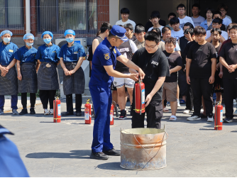 随后,来自消防大队的专业人员为师生们进行生动且实用的灭火器使用讲解与示范。消防队员们详细介绍了不同类型灭火器的适用场景,并通过现场演示,向师生们清晰展示了灭火器的正确操作方法。理论讲解与示范结束后,进入了实操体验环节。师生们热情高涨,纷纷踊跃上前参与。