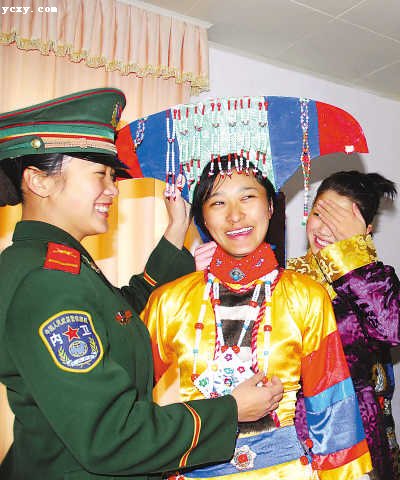 筹划了形式多样的藏文化活动。这是官兵们正在精心打扮。