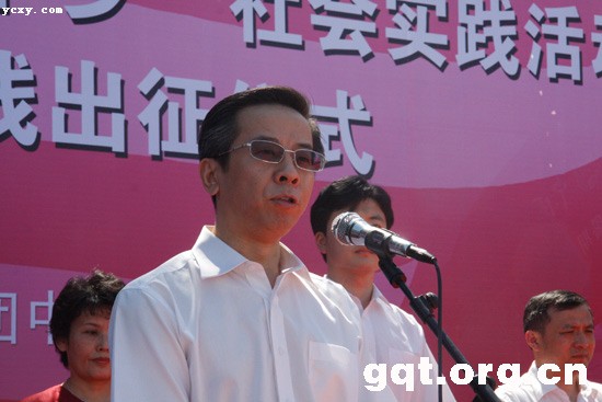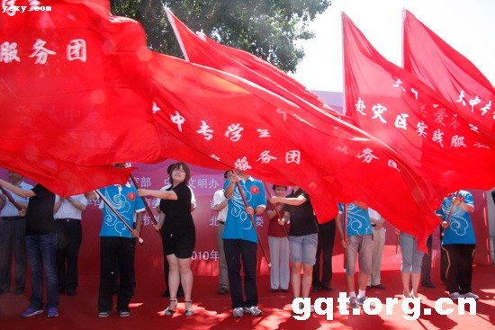 中国共青团网7月6日讯(记者 张晓琳摄影报道)日前,由中宣部、中央文明办、教育部、团中央、全国学联共同举办的2010年全国大中专学生志愿者暑期“三下乡”社会实践活动启动暨首都大学生暑期社会实践活动出征仪式在北京市巨山小学举行。团中央书记处书记卢雍政,教育部党组成员、部长助理林蕙青,北京市委常委梁伟,全国学联主席刘凯等出席活动并为实践服务团队代表授旗。以此为标志,2010年“三下乡”社会实践活动正式拉开序幕,全国近千万大中专学生将陆续奔赴祖国各地的山乡村寨,在火热的社会生活中受教育、长才干、作贡献。