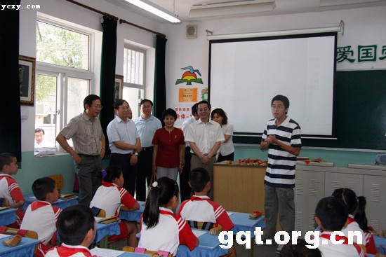 作为本次启动仪式举办地的北京巨山小学90%的学生是外地来京务工农民子女,中国农业大学、首都师范大学的大学生志愿者将在这里与巨山小学的小朋友们一起,手拉手共同度过快乐的暑假。启动仪式结束后,大学生们带领小朋友们就地玩起了与数学、美术、音乐等课程相关的游戏,卢雍政、林蕙青、梁伟等有关领导也高兴地参与到游戏中。在四年一班的教室里,大学生志愿者正在示范讲授着石头线描的制作过程,并指导孩子们自己动手制作作品。看到领导们来到教室,同学们纷纷围上来问各位领导的属相,现场绘制作品赠送送给大家,领导们高兴地赞赏着孩子们的学习成果。在五年二班,领导们与同学们一起学习快板技术,学生们当场展示了自制快板作品《眼睛,心灵的窗户》。
