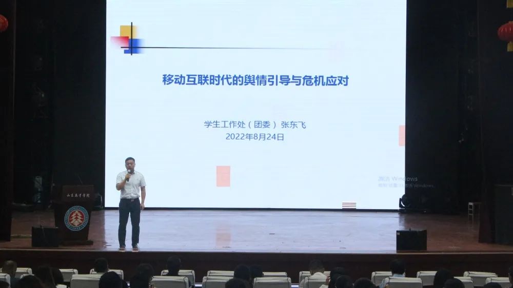 8月24日,学生处长、校团委书记张东飞《移动互联时代的舆情引导与危机应对》主题报告。