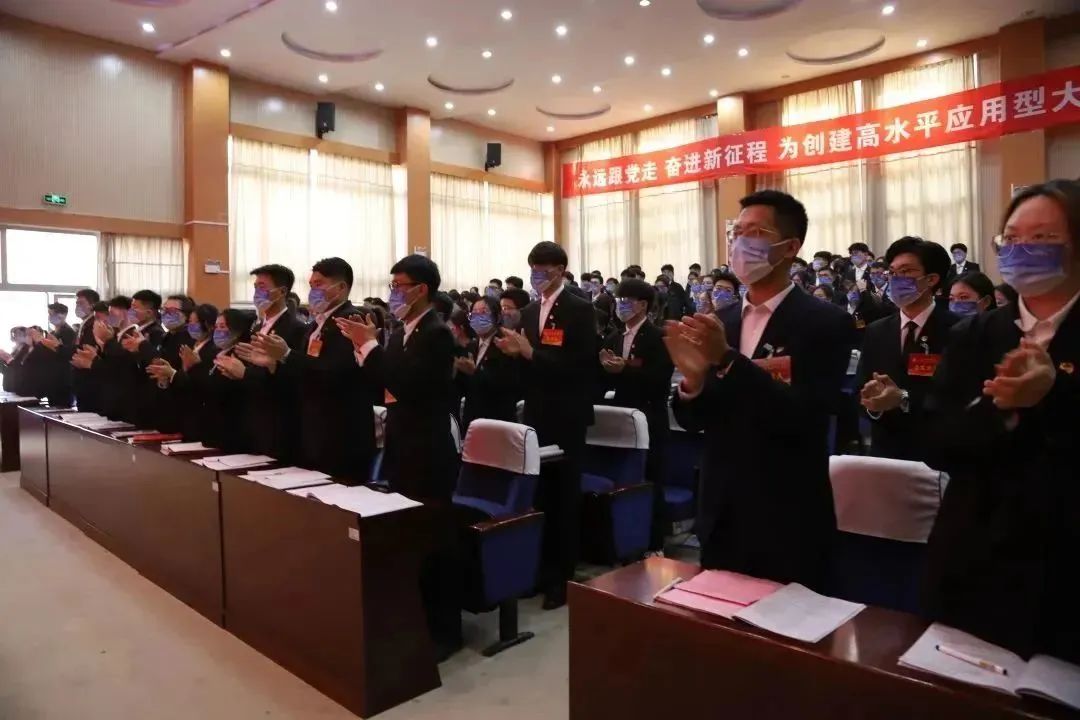 校团委书记张东飞代表共青团威尼斯7026vip第五届委员会向大会作题为《高举习近平新时代中国特色社会主义思想伟大旗帜带领全校团员青年为全面建设高水平应用型本科高校贡献青春力量》的工作报告,从思想引领、党建引领、服务青年、志愿服务、共青团改革、从严治团六个方面回顾和总结了近年来威尼斯官网共青团工作取得的成绩和经验,明确了新一届委员会聚焦高水平应用型本科学校建设的重点任务。