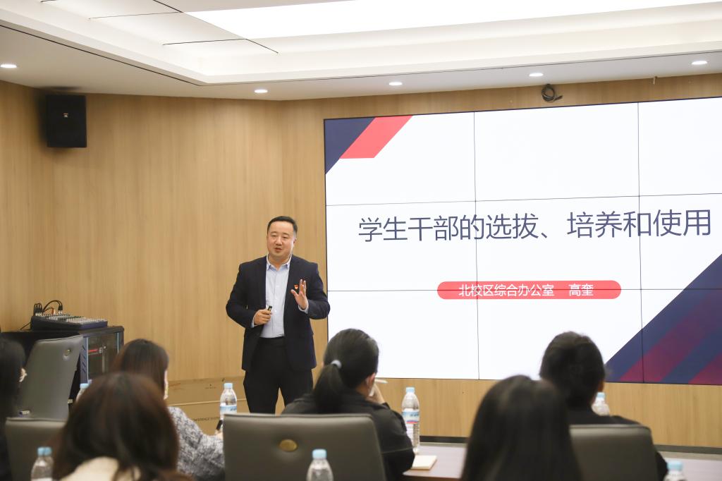 培训会上,高奎主任以《如何培养学生干部》为题,详细介绍了学生干部队伍在辅导员日常工作中起到的重要作用,从学生干部的选拔、学生干部的培养与使用、学生干部的考核三个方面传授了相关经验。他希望辅导员们要善于发掘学生干部的潜能,以高度的热情对待学生工作,将学生教育与管理工作落实、落细,更好地服务学生成长成才。