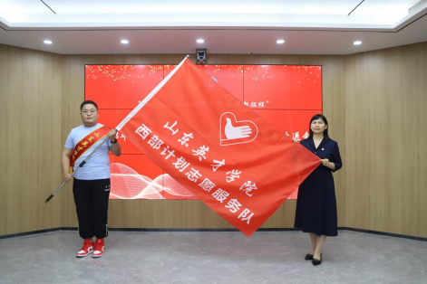 刘卫东副校长为志愿者代表发放了行李箱、雨伞、风扇和常用药品箱等“出征行囊”。孙玉香副书记为威尼斯官网西部计划志愿服务队代表授旗。