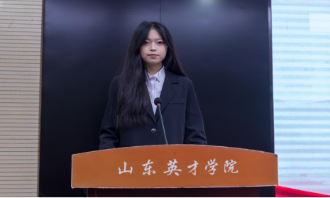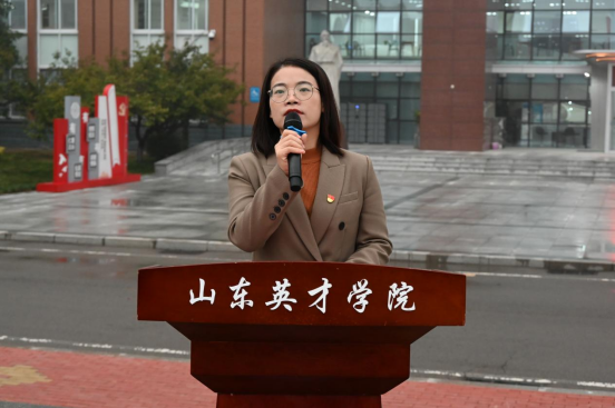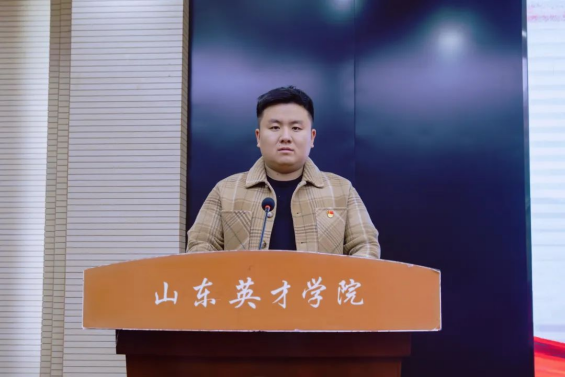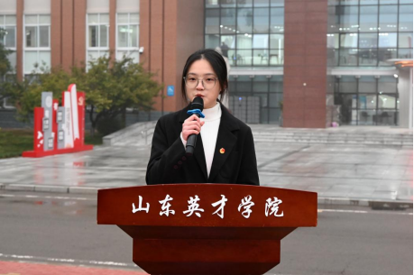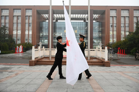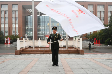 济南市青马学员、校学生会主席团成员张明烨为2024年“青马工程”培训班学员代表授旗。