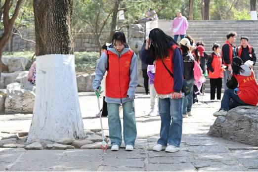 在千佛山景区,志愿者们便如同勤劳的蜜蜂般迅速投入到各自的工作岗位。环保小分队的同学们手持环保工具,穿梭在山间小径、树林和休息区,仔细地捡拾着游客们不经意间留下的垃圾。他们不放过任何一个角落,哪怕是一片小小的纸屑也被认真地收入垃圾袋中。经过他们的努力,千佛山的环境焕然一新,更加清幽宜人。
