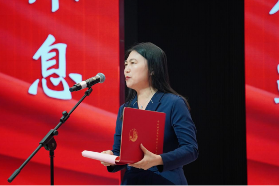 执行校长王晓娜在致辞中向全校青年师生致以节日问候,缅怀五四先驱的爱国精神,回顾2024年学校共青团工作取得的优异成绩。她号召青年学子牢记总书记嘱托,传承五四精神,在民族复兴的伟大时代奋发有为,以优异成绩迎接新中国成立76周年。