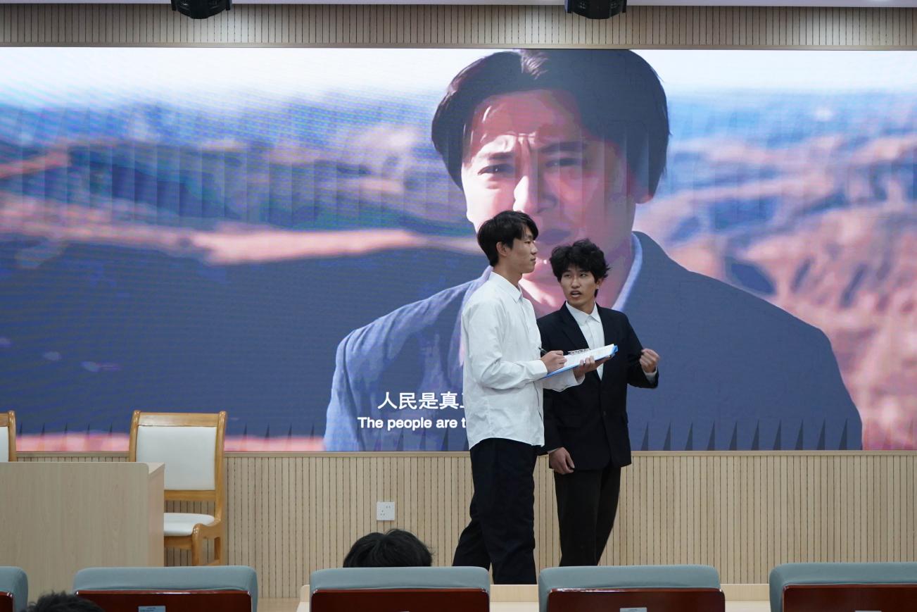 表演过程中,现场气氛热烈,观众仿佛置身于那个风云激荡的年代,第二幕与周先生初次见面的斯诺受到了热情的欢迎,在周先生慷慨的发言下,同学们对中国共产党始终为人民某幸福的精神有了深刻的理解