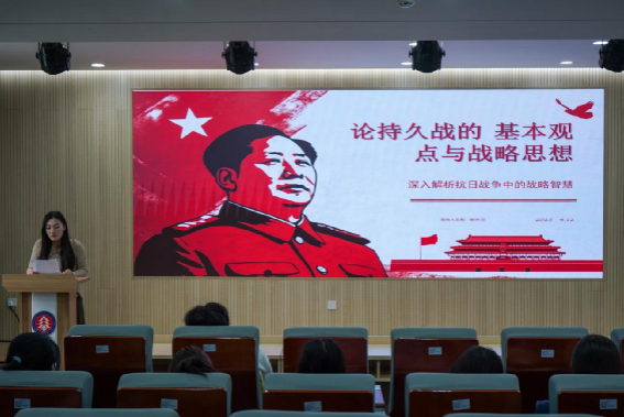 本次读书交流会的活动主题是“讲述《论持久战》相关内容”。宣讲员们让科学分析抗日战争形势,指出敌强我弱决定中国不能速胜,但日本的侵略战争本质决定其必败。中国抗战将经历战略防御、相持、反攻三个阶段,强调依靠人民,实行人民战争路线,为夺取抗战胜利指明方向和战略战术,使得同学们更加深刻地铭记那些为今天付出了生命的英雄们。