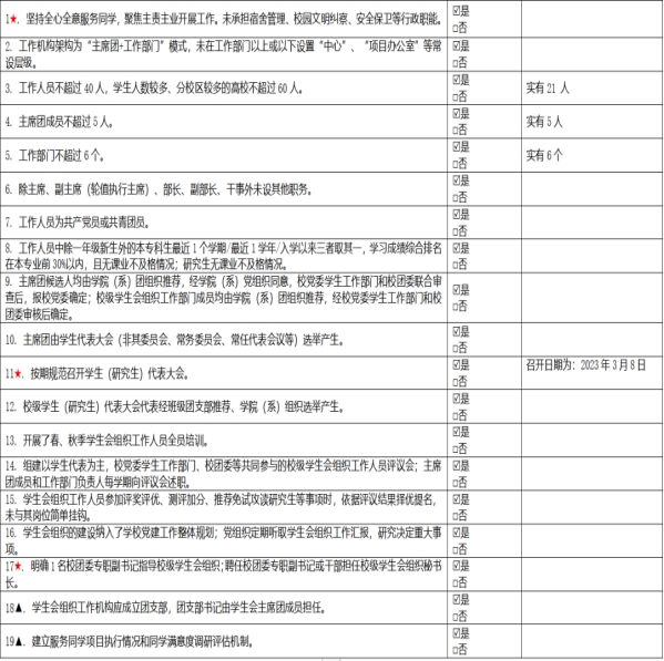 (二)二级学生会组织(含二级院系、书院、分校区等学生会、研究生会)改革自评表