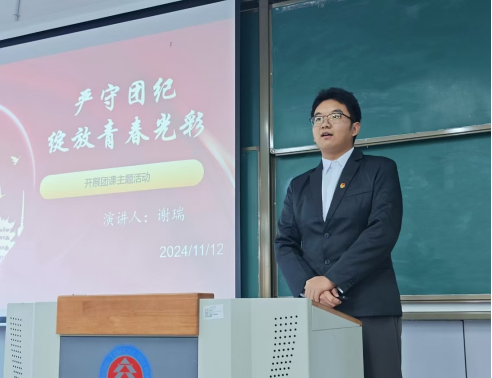 首先,青马宣讲团谢瑞同学做了“严守团纪,绽放青春光彩”主题分享。他以三个坚持、两个坚决为基础强调团的纪律建设,细述团的纪律处分规定,并剖析了上述工作遵循的原则。团纪在心中,青春永无悔!