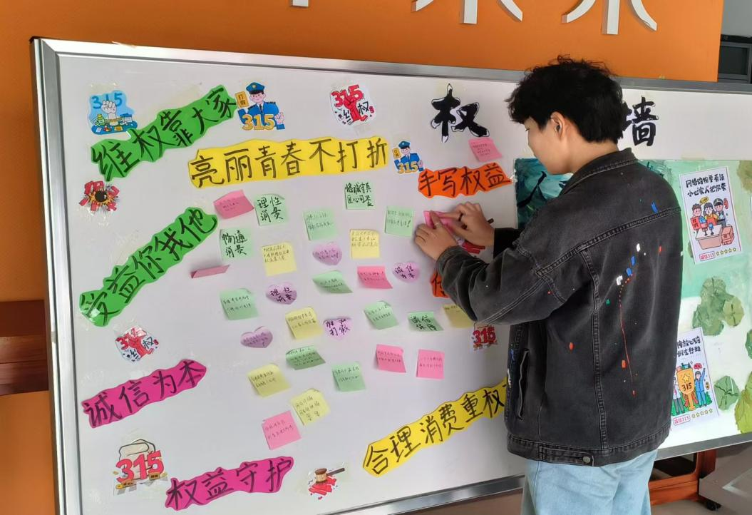 活动当日,同学们积极参与,纷纷在便利贴上记录自己的消费经历与维权建议。有同学分享了网购时遭遇货不对板,最终通过平台成功维权的经历;也有同学倾诉了在线下购物时遭遇“虚假折扣”的烦恼。这些真实故事在校园里引发强烈共鸣,成为大家学习维权知识的生动案例。