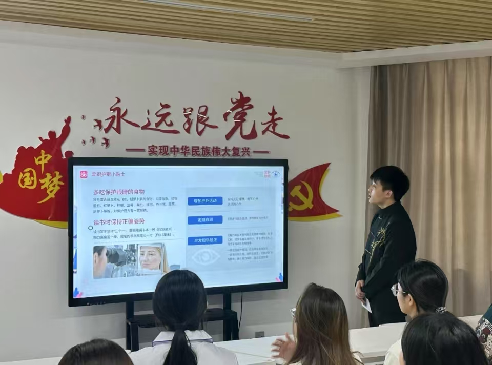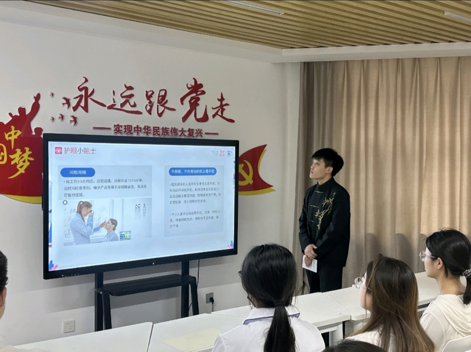 活动以PPT开场开启爱眼之旅,主持人带领同学们穿梭于,视觉科学的奇妙世界,从眼球构造的精妙绝伦,到近视形成的潜在诱因,每个知识点都如同一把金钥匙,打开同学们对眼健康认知的大门。