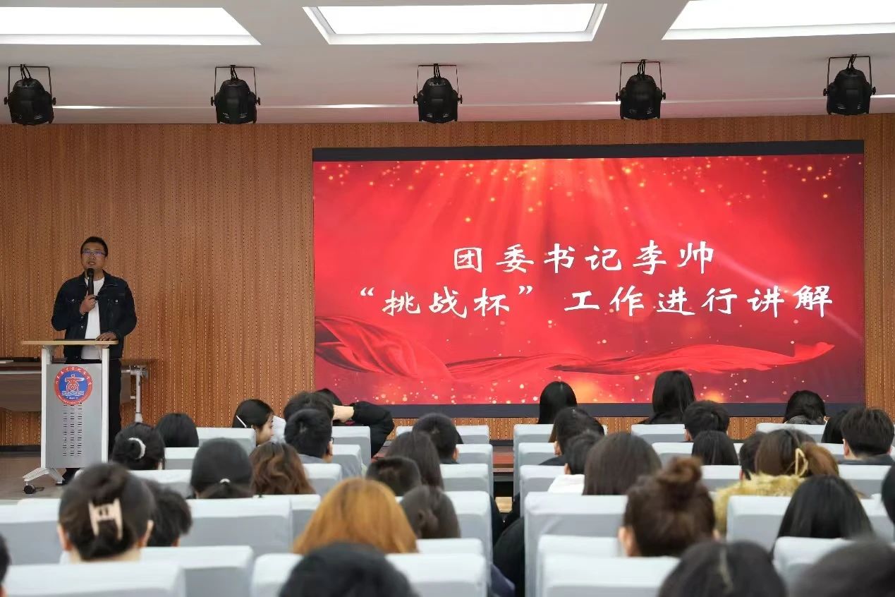 专题宣讲开始之前,商学院(国际学院)团委书记李帅首先对此次大赛的工作进行了布置,强调了本次大赛的重要程度,分享了自己的大赛指导经验。他鼓励同学们要结合各自的专业知识,将所学知识和参赛经验充分运用到此次大赛中,勤于思考,积极准备,勇于创新,争取在本次大赛中取得优异的成绩。