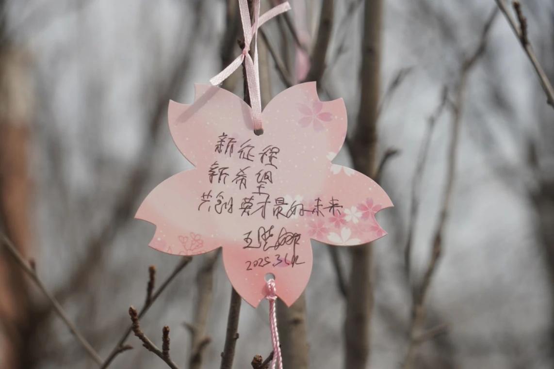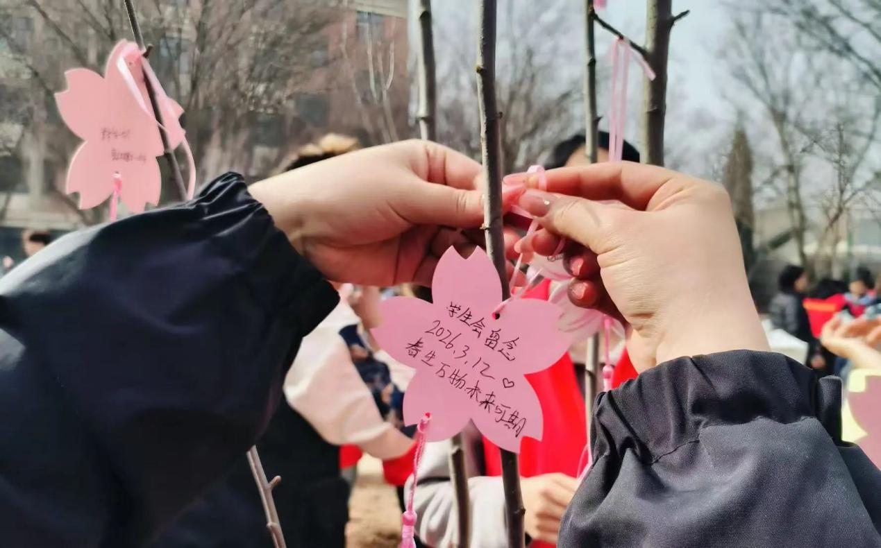 植树结束后,师生们纷纷在树上挂上了精心准备的心愿牌。心愿牌上,有对未来的美好憧憬,有对师长和同学的感恩之情,也有努力学习、报效祖国的铮铮誓言。一张张心愿牌承载着大家的美好愿望,也为校园增添了一道靓丽的风景。