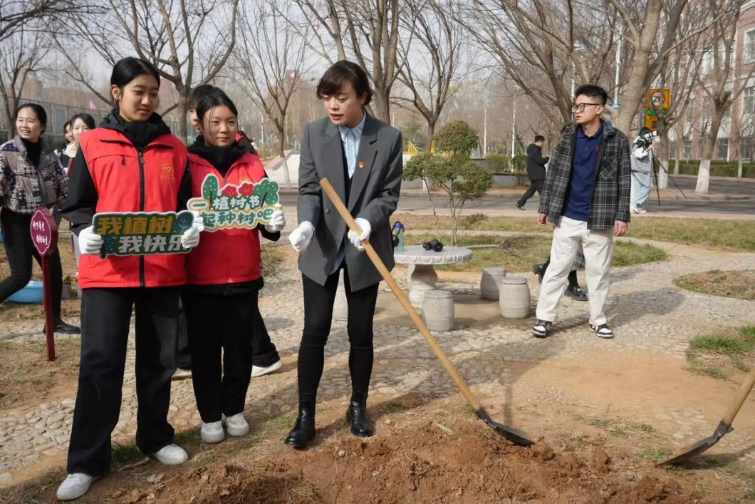 执行校长王晓娜在致辞中指出,“全民植树增绿,共建美丽中国”是习近平总书记的明确要求。高校作为知识传播与文化传承和创新发展的重要平台,更应在生态文明建设和绿色可持续发展工作中发挥积极的带头作用。为此,她向全校师生提出了三点倡议:一是争做绿色发展的践行者,各级团组织要充分发挥带头作用,将志愿服务工作开展常态化,在重要节点期间集中开展环保主题活动,为环保贡献力量;二是争做美丽校园的建设者,树立“我爱我家”的主人翁意识,师生齐心协力,共创美丽校园;三是争做绿色发展的传播者,鼓励同学们发挥新时代青年的优势,积极传播环保理念,使更多人参与到绿色建设中来。