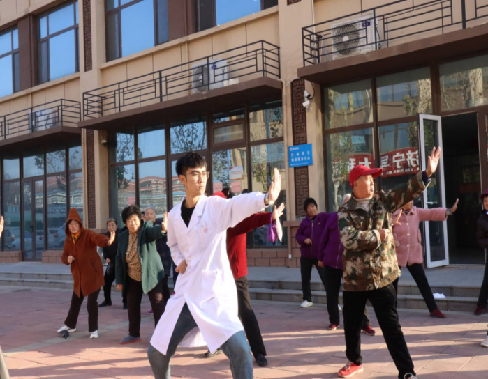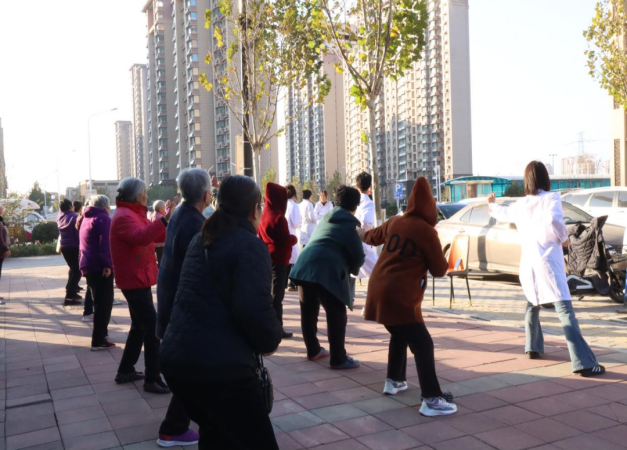 志愿者们带领居民们学习八段锦,作为中国传统健身气功的代表,八段锦以其独特的魅力和健身效果深受人们喜爱。居民们认真学习,在感受传统健身文化韵味的同时,提高了自身免疫力。